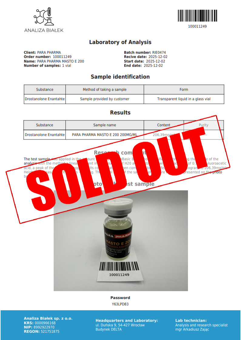 | Substance | Drostanolone Enanthate 200mg/ml |